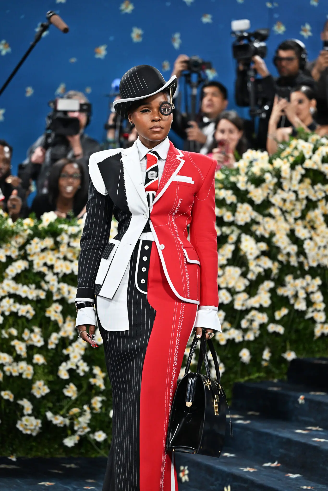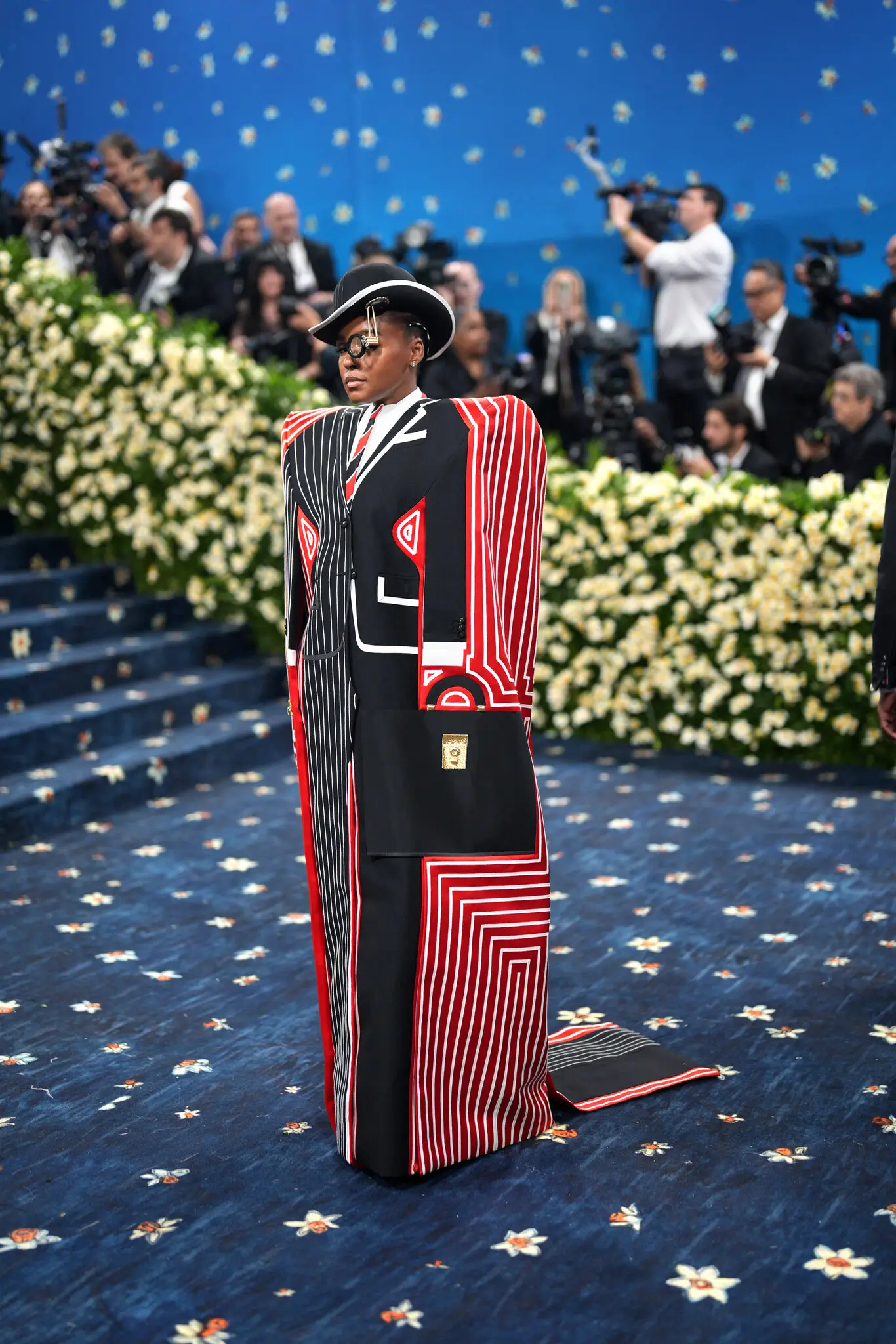 Always a red carpet visionary, Monáe wore a double-breasted suit-dress hybrid with LED embroidery that lit up to reveal quotes from James Baldwin and Audre Lorde. The interactive design wasn’t just stunning—it was political, poetic, and entirely unforgettable.