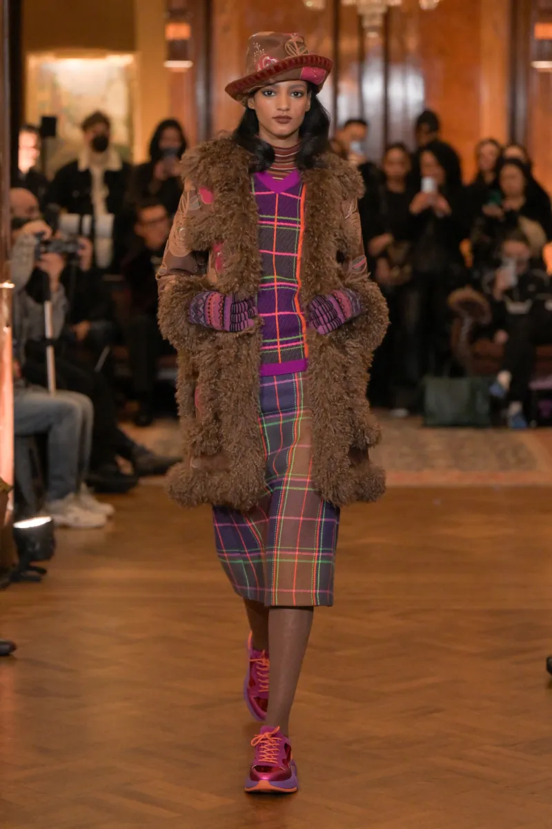 Presenting at the National Arts Club in Gramercy Park, Anna Sui transported her audience into a world of aristocratic nostalgia and playful grandeur. Her Fall/Winter 2025 collection paid homage to iconic socialites—Barbara Hutton, Doris Duke, and Peggy Guggenheim—women known for their eccentric yet luxurious style.