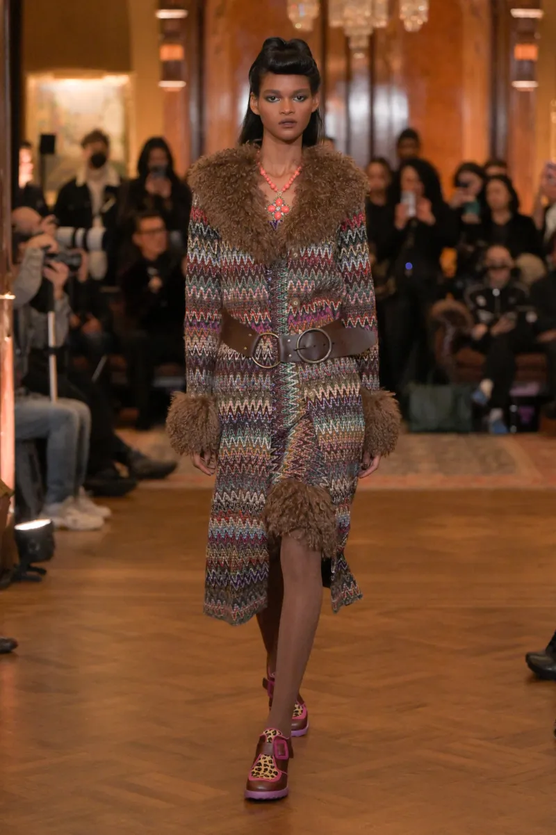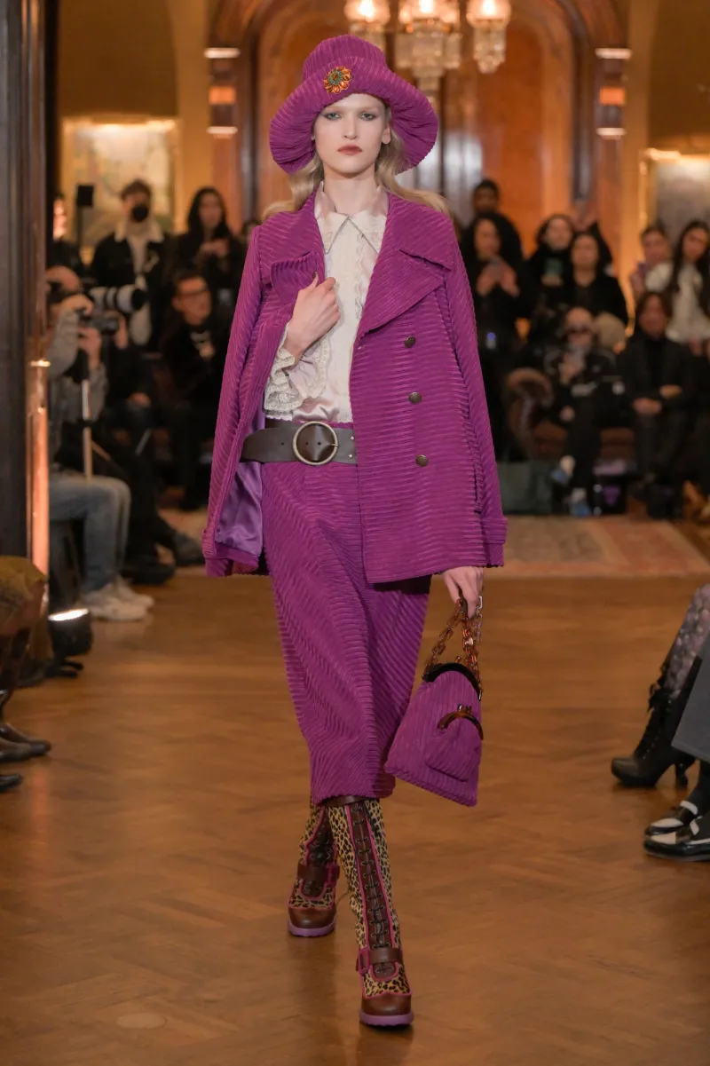Sui’s latest designs celebrated vintage maximalism, blending European sophistication with downtown irreverence. Key pieces included: