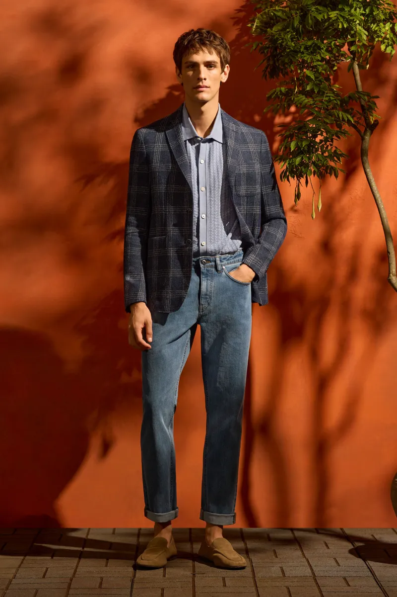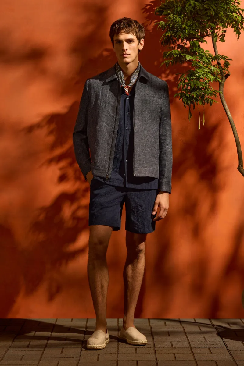 The Made in Italy range offers both tailored and casual pieces. Standouts include a lightweight jersey jacket crafted from cotton, linen, and silk; a refined cotton-cashmere tracksuit; a water-repellent travel jacket detailed with leather-trimmed pockets; a cotton-linen jacquard sweater; and a sleek seersucker bomber jacket. Prices for the capsule sit about 40 percent above Bugatchi’s core line, with knitwear ranging from $300 to $500 and blazers between $798 and $998.