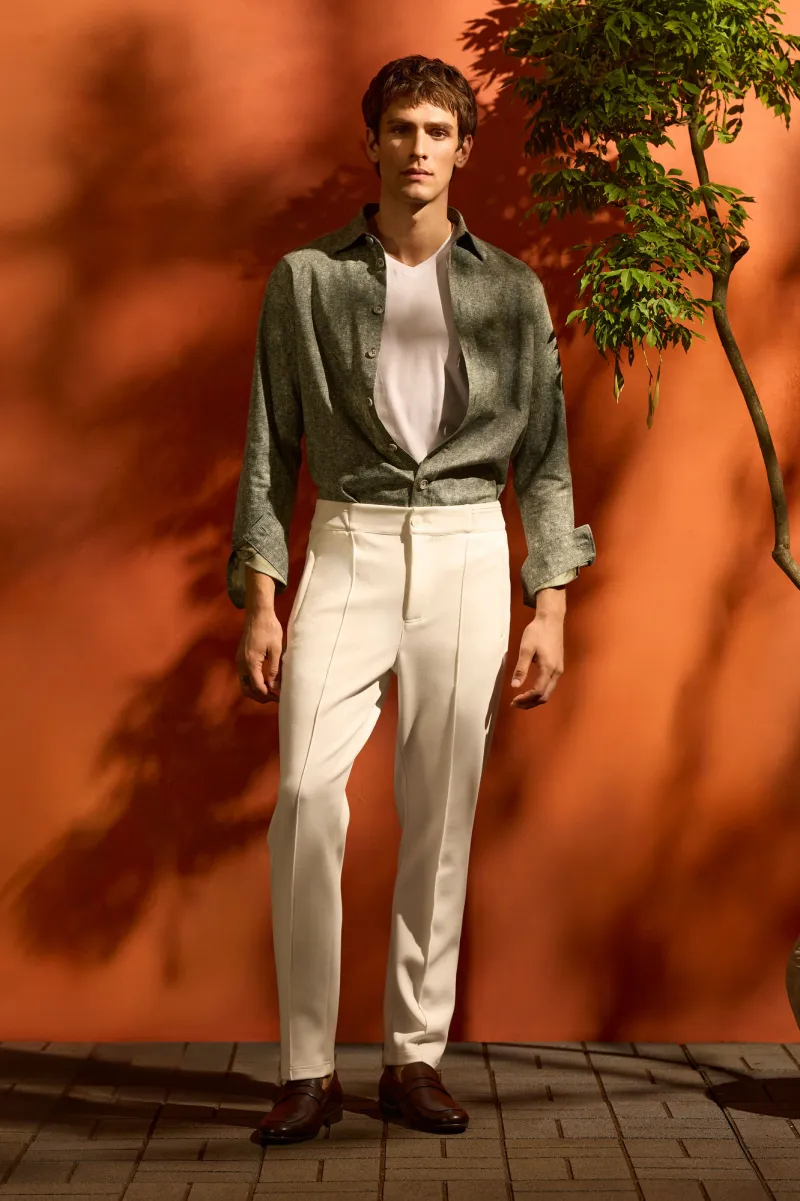 Stephane Abitbol, executive vice president of corporate development and legal at Bugatchi, shared that the Made in Italy line has been performing exceptionally well with specialty stores and is expected to continue gaining traction. “We don’t want to toss our core,” he said. “We wanted the capsule to continue to elevate the brand. It’s all meant to be worn together and present the best version of Bugatchi.”