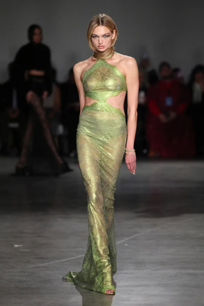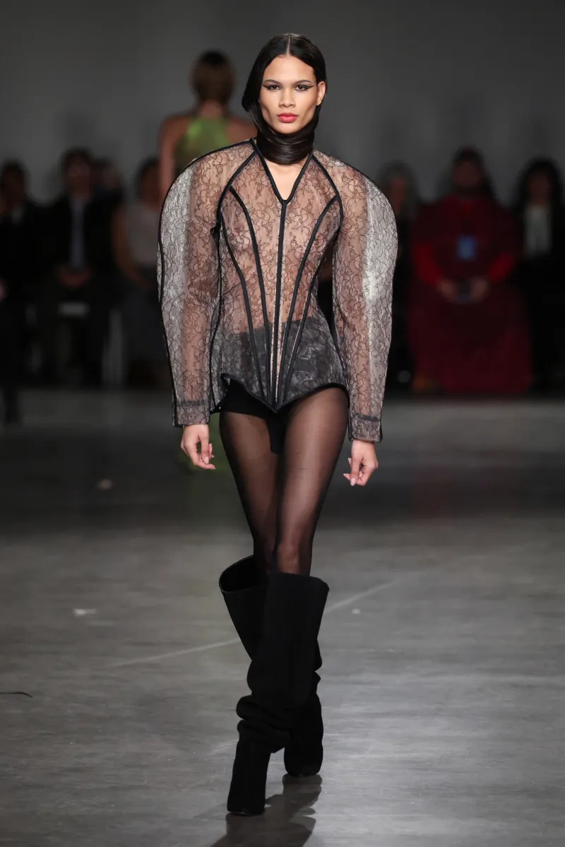 Models were the heartbeat—a stunning spectrum of sizes, shapes, and stories, pure Siriano inclusivity. No gatekeeping here; this dream world’s open to all. The set’s mind-bending mirrors and color-shifting beams pulled everyone in, turning spectators into co-stars in the collective trance.