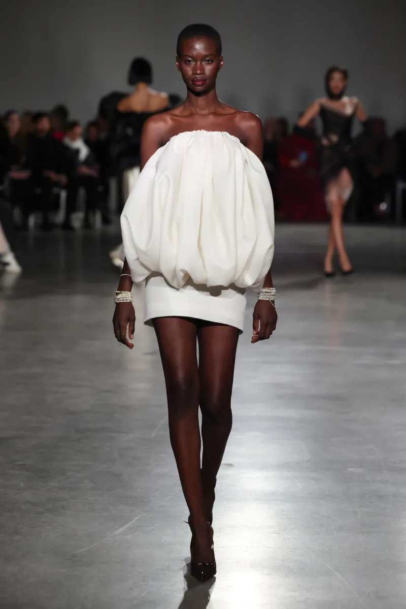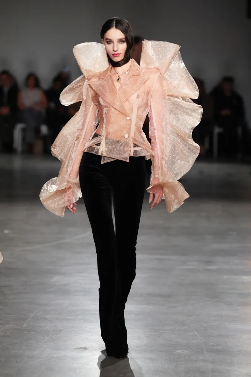 Volume rules supreme—gargantuan ball gowns that envelop you in bliss, right beside razor-edged power suits with shoulders like armor. Menswear moments shine too: capes structured like wings, wide brocade trousers flowing ethereally yet grounded enough for real strides.