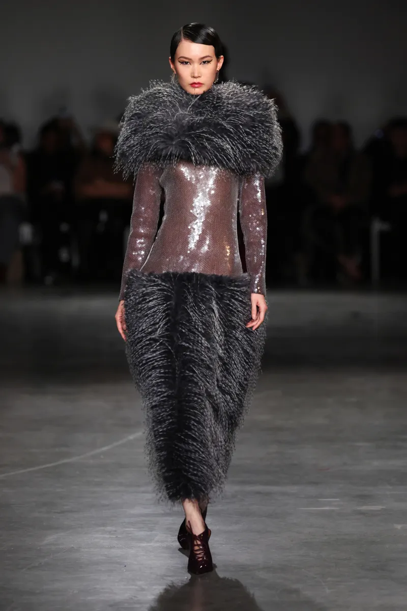 Oh man, walking into Christian Siriano’s Fall 2026 New York Fashion Week show was like Alice free-falling into Wonderland, but make it high-glam. This massive industrial spot morphed into a psychedelic playground—think funhouse mirrors warping your reflection, lights pulsing like a fever dream. “Fashion Fantasia” captures it perfectly: Siriano’s bold plunge into where real life meets wild imagination, through shapes and fabrics that feel alive, ready to sweep you off into another realm.