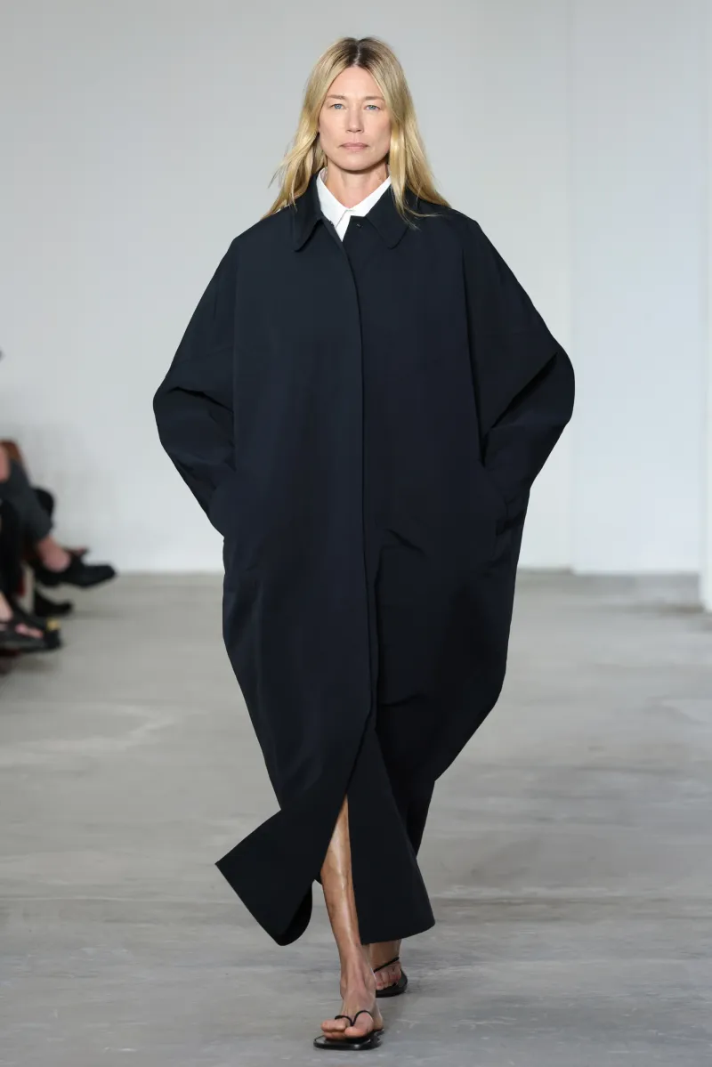 For Spring 2026, Howie looked back to her childhood in New Zealand’s rugged coastline and the dramatic beaches of Cornwall. She said, “They learn to swim before they learn to talk, because the ocean is so fierce and so dangerous.”