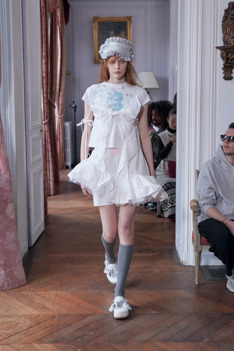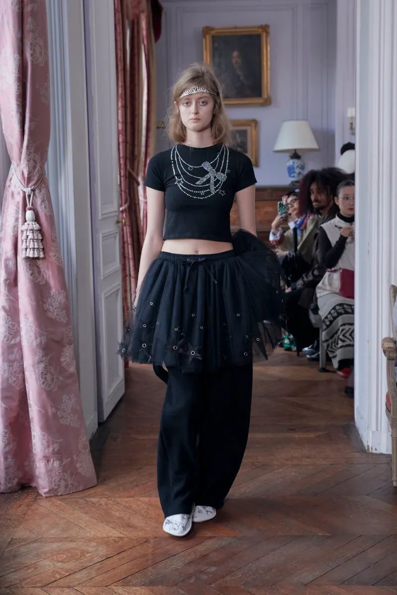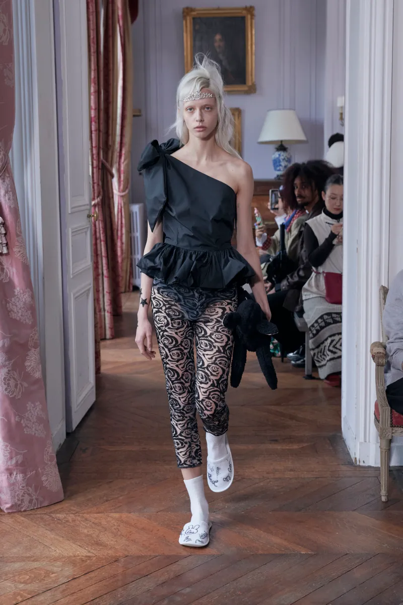 Star shapes shot through the collection: They were laser-cut into garments and appearing glittering on models’ faces as they wound their way through a Parisian stately home for the show.