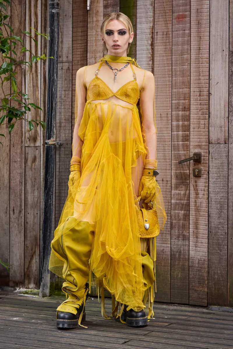 This collection leans into architectural silhouettes, where sharp lines and controlled proportions define the overall aesthetic. Oversized coats, structured blazers, and elongated trousers create a sense of intentional volume, while maintaining a clean and polished finish. The tailoring feels deliberate yet effortless, reflecting a contemporary approach to dressing.