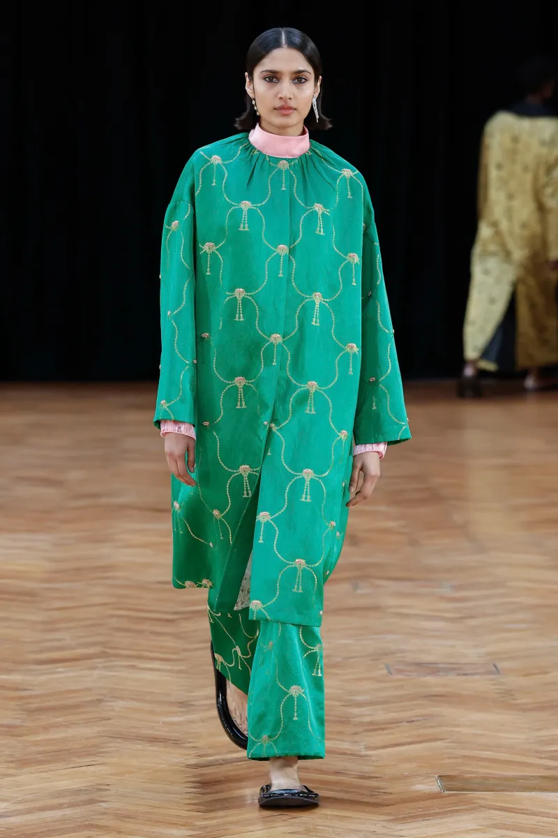 Raw Mango has always understood that tradition doesn’t need to be frozen to be honoured — and fall 2026 made that case with characteristic quietness and conviction. The collection unfolded as a dialogue between past and present, not preserving heritage as an artifact and not reinventing it for novelty’s sake, but allowing it to evolve at its own unhurried pace.