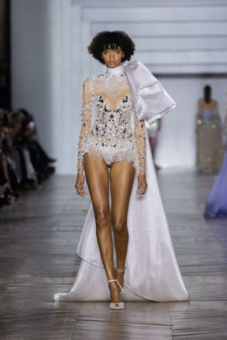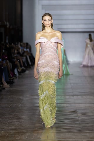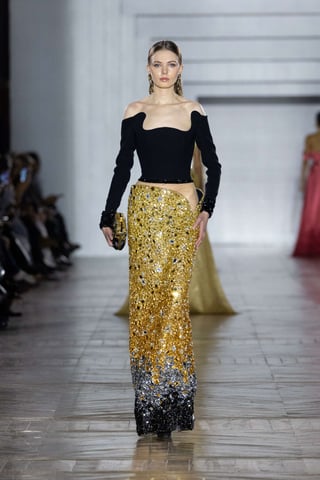 The presentation was seamless, with the collection gradually building up to more dramatic pieces without losing its continuity. While some of the designs tended towards the lavish side, the presentation was still flawless. Tony Ward reaffirmed his position as a master of intricate glamour, delivering couture that felt radiant and meticulously constructed.